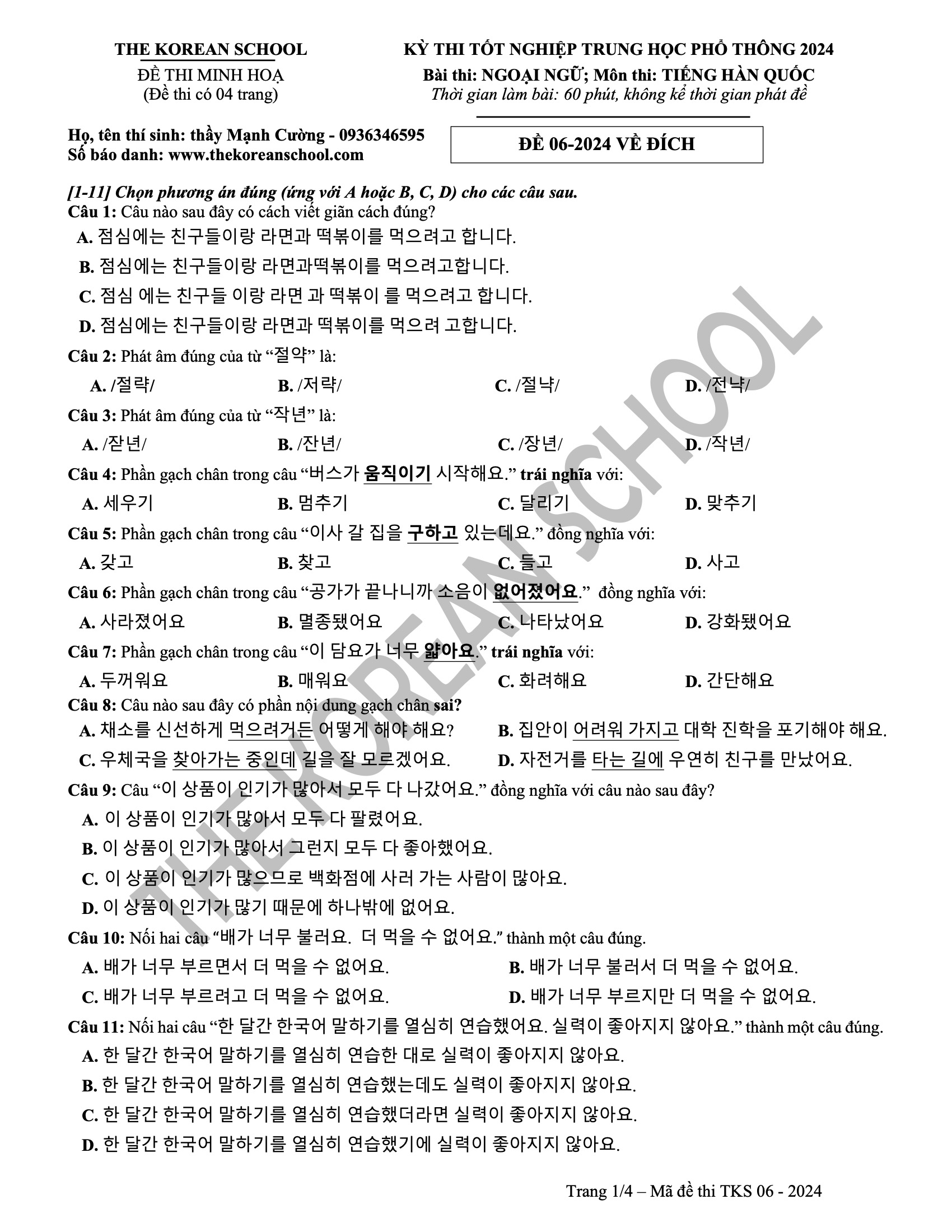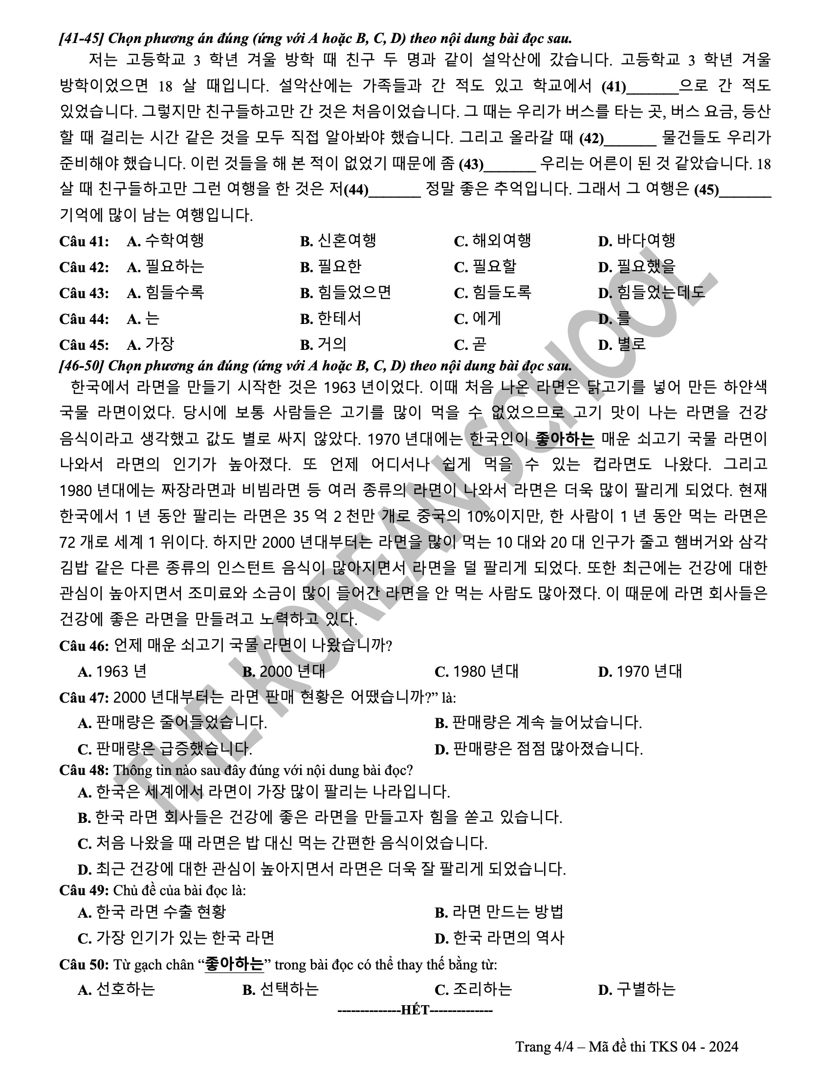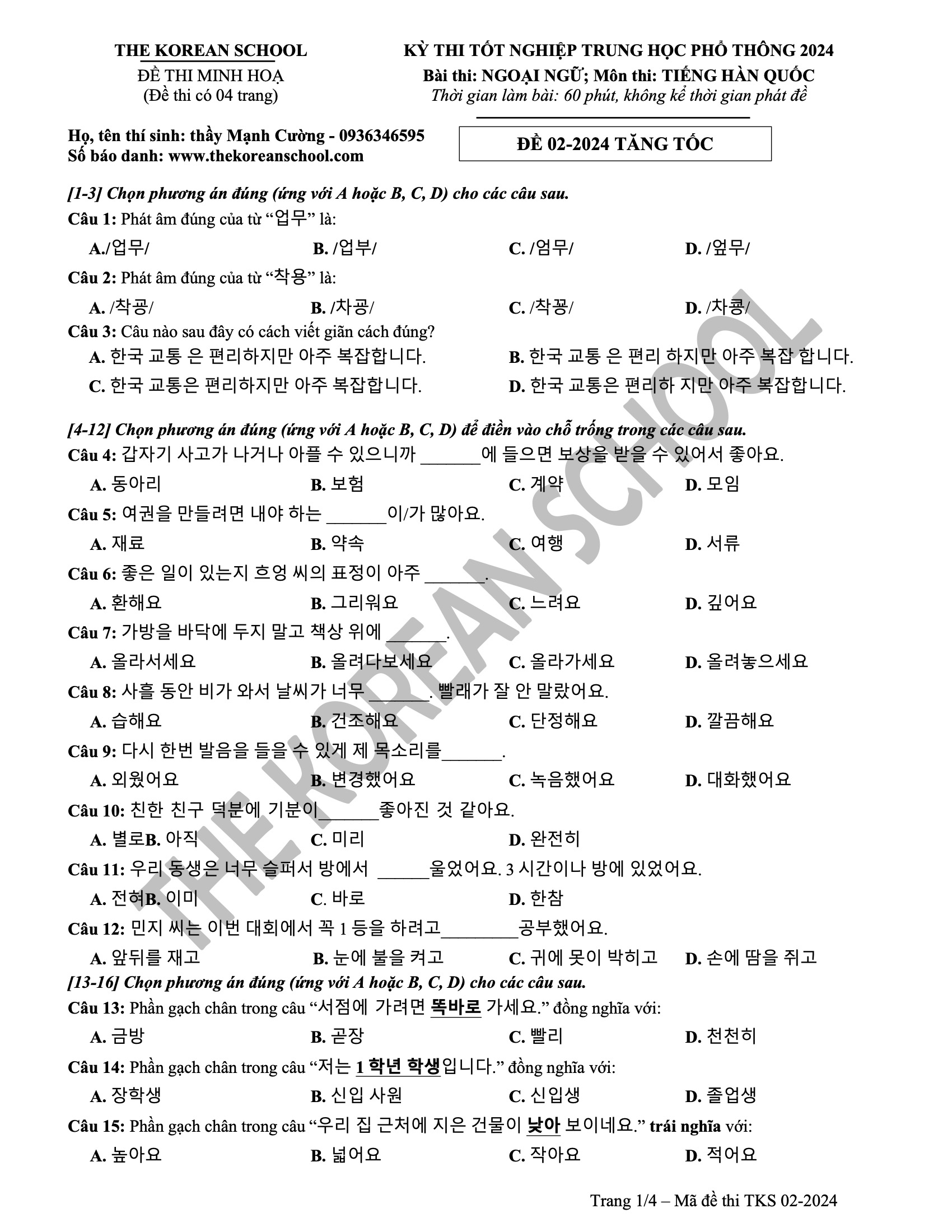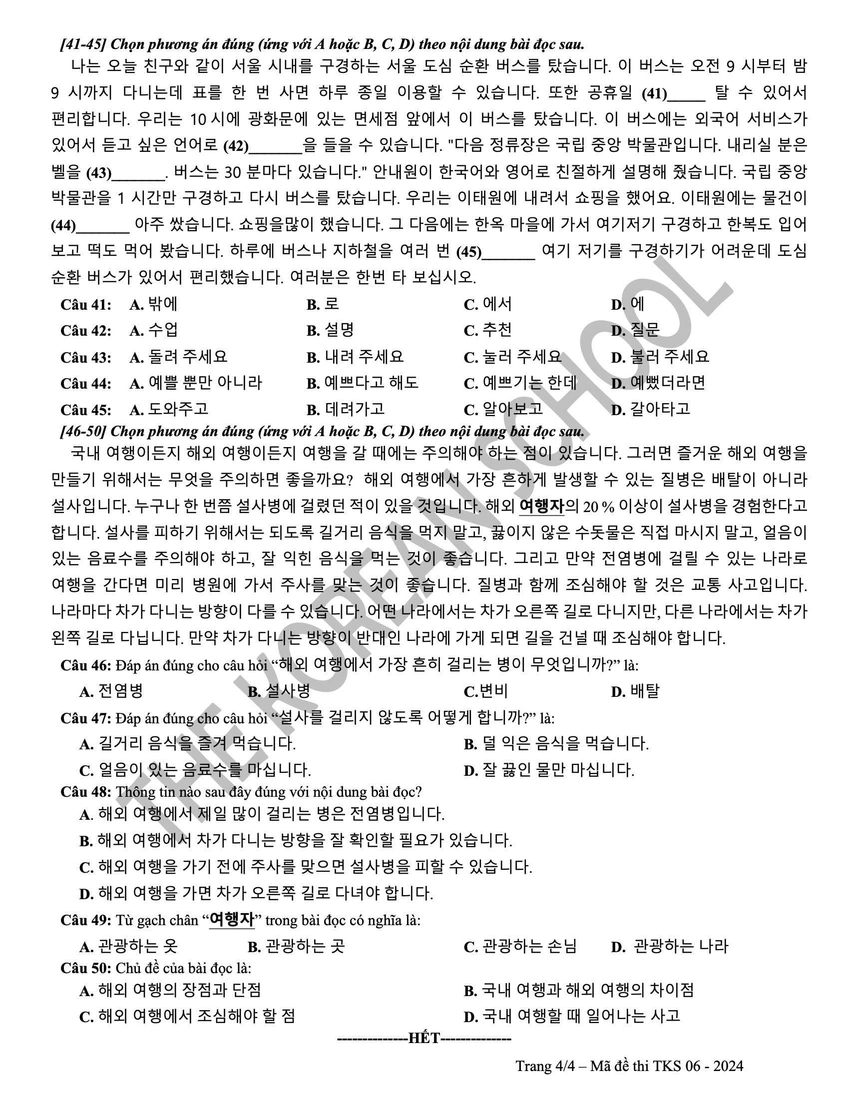 6 đề vip pro THPT tiếng hàn 2024