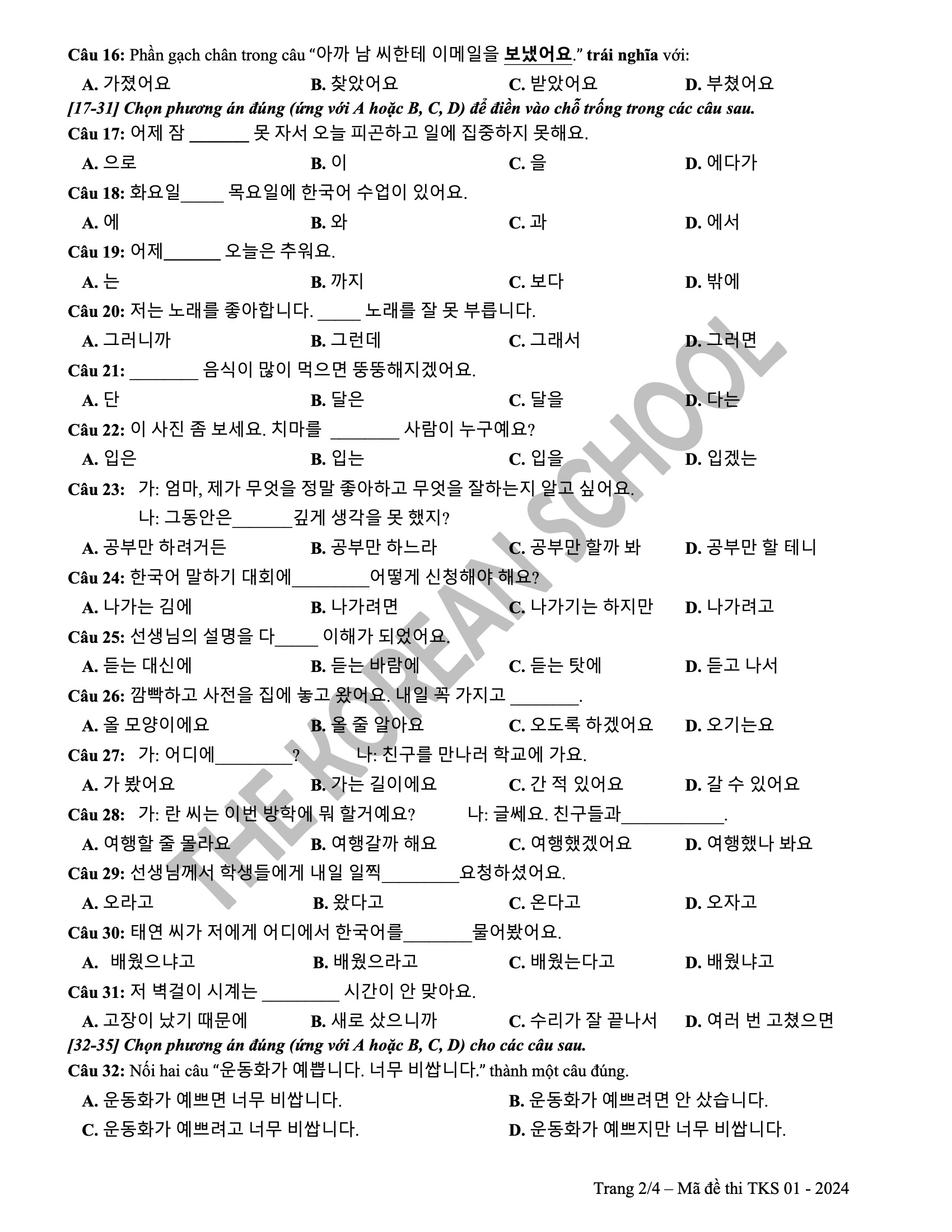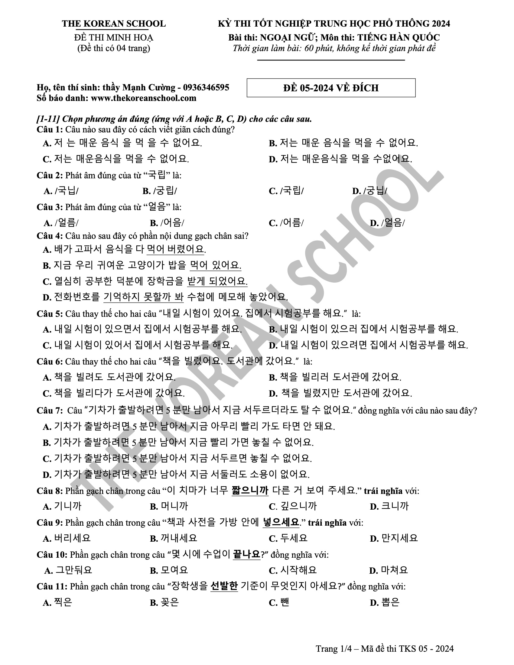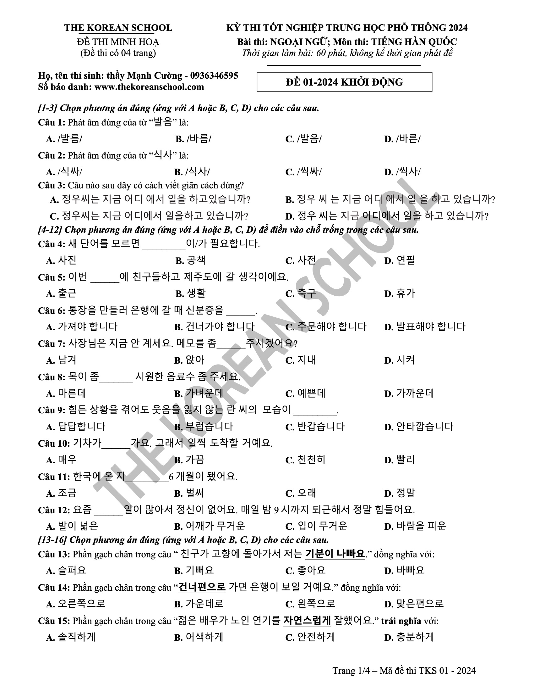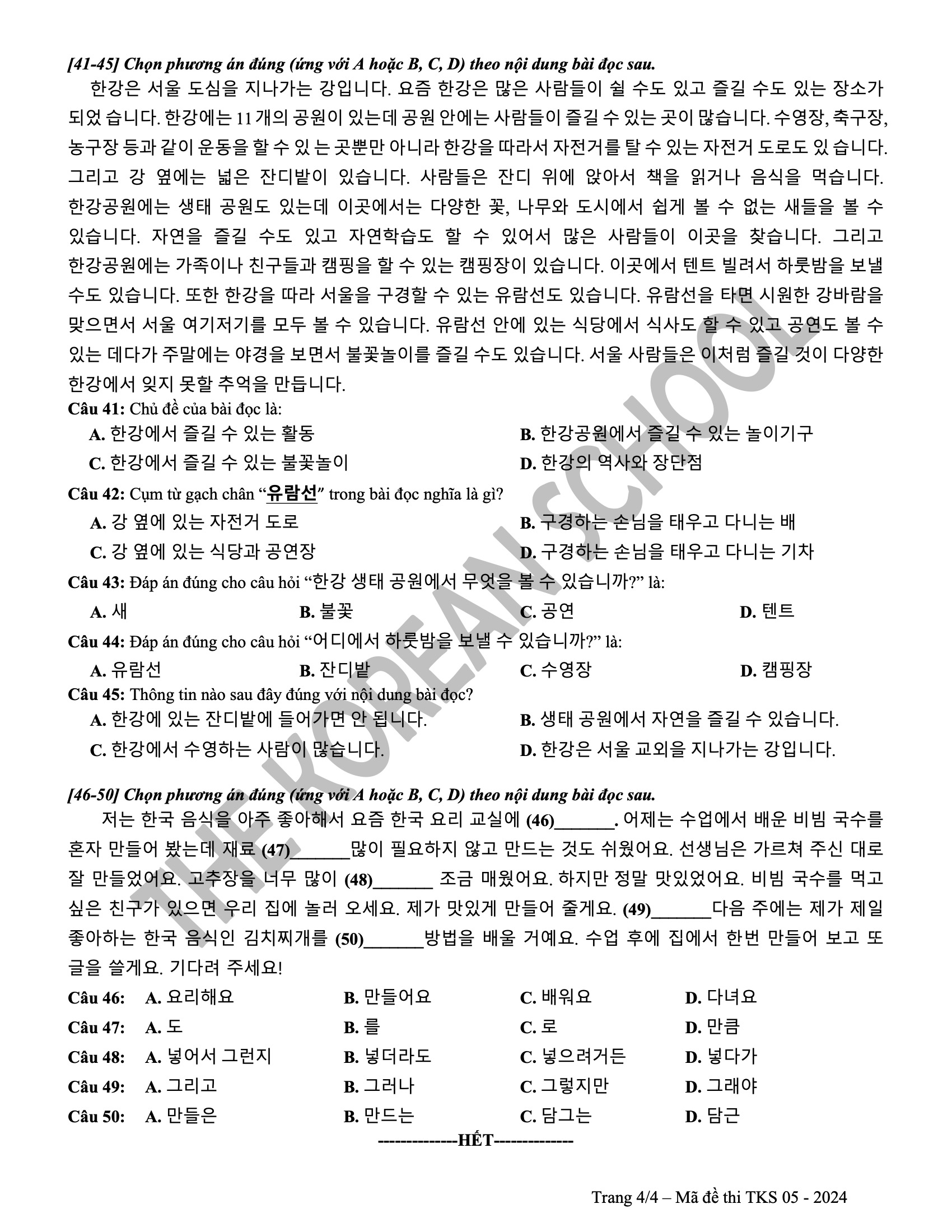 6 đề vip pro THPT tiếng hàn 2024