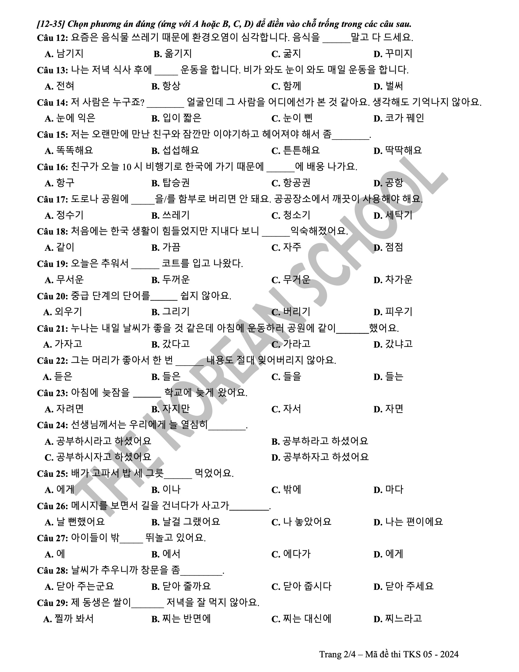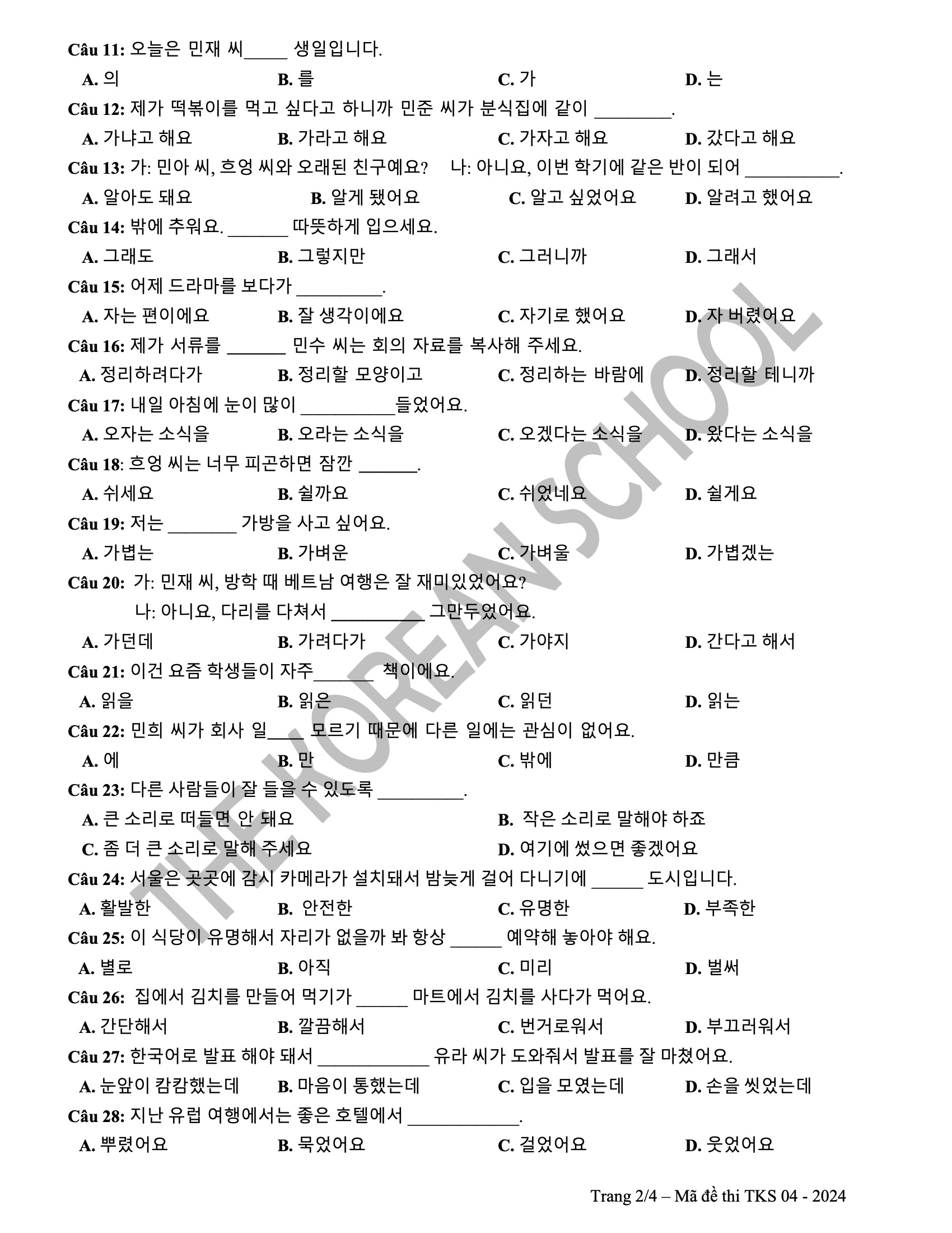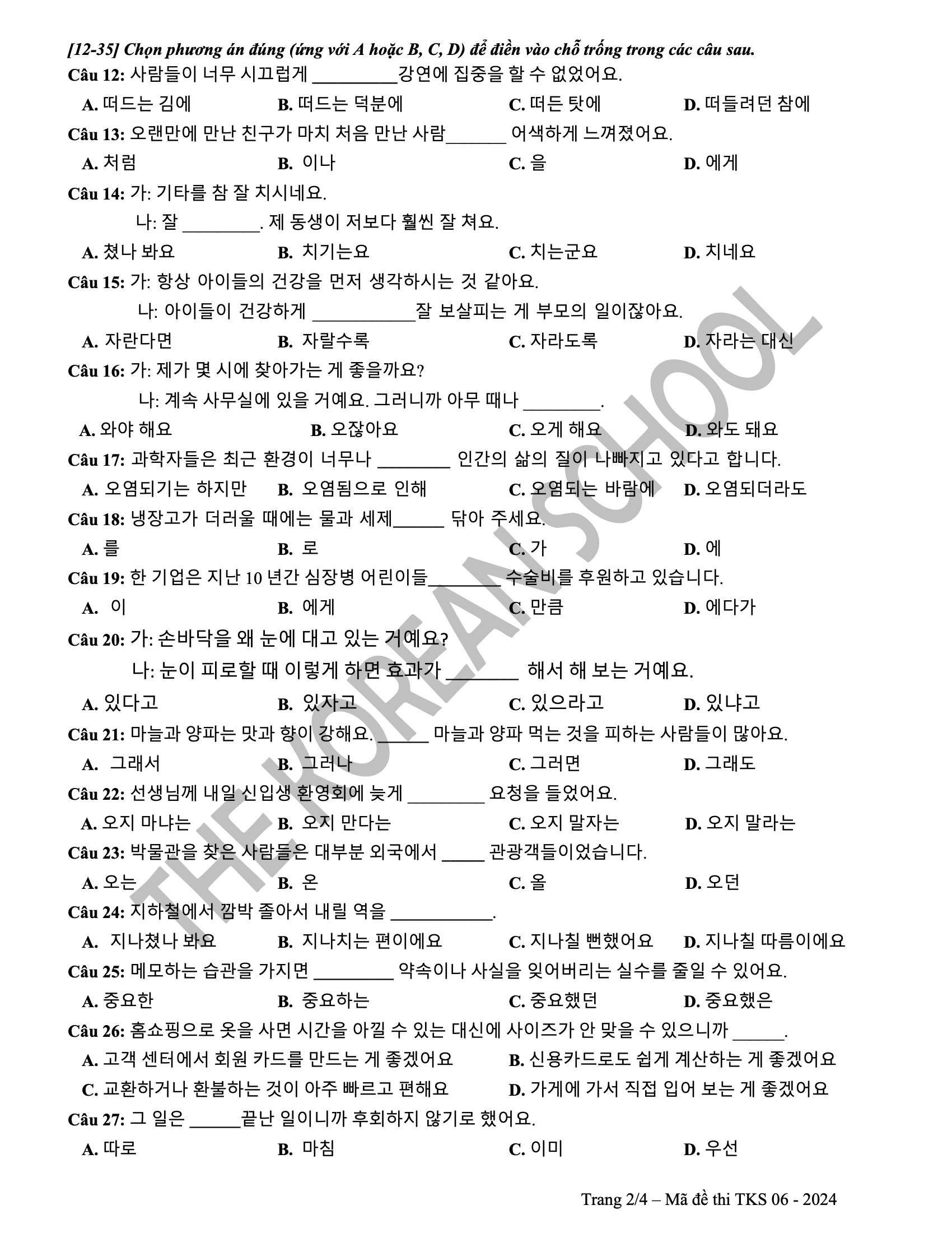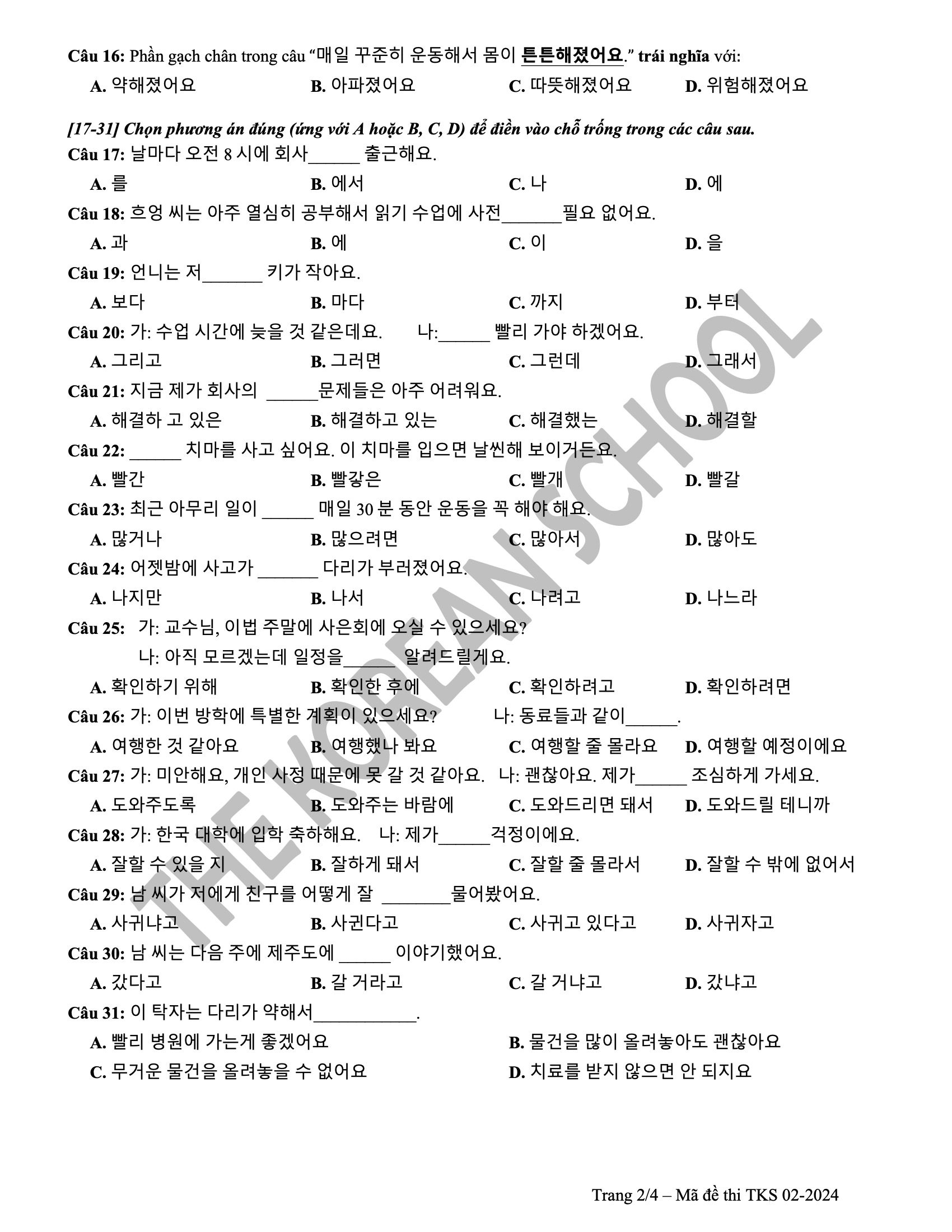6 đề vip pro THPT tiếng hàn 2024