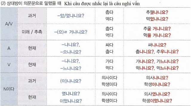 3. Khi lặp lại lời của đối phương, câu trực tiếp được dùng ở hình thức nào thì câu trích dẫn gián tiếp đứng trước -다니요? sẽ có hình thức như vậy.