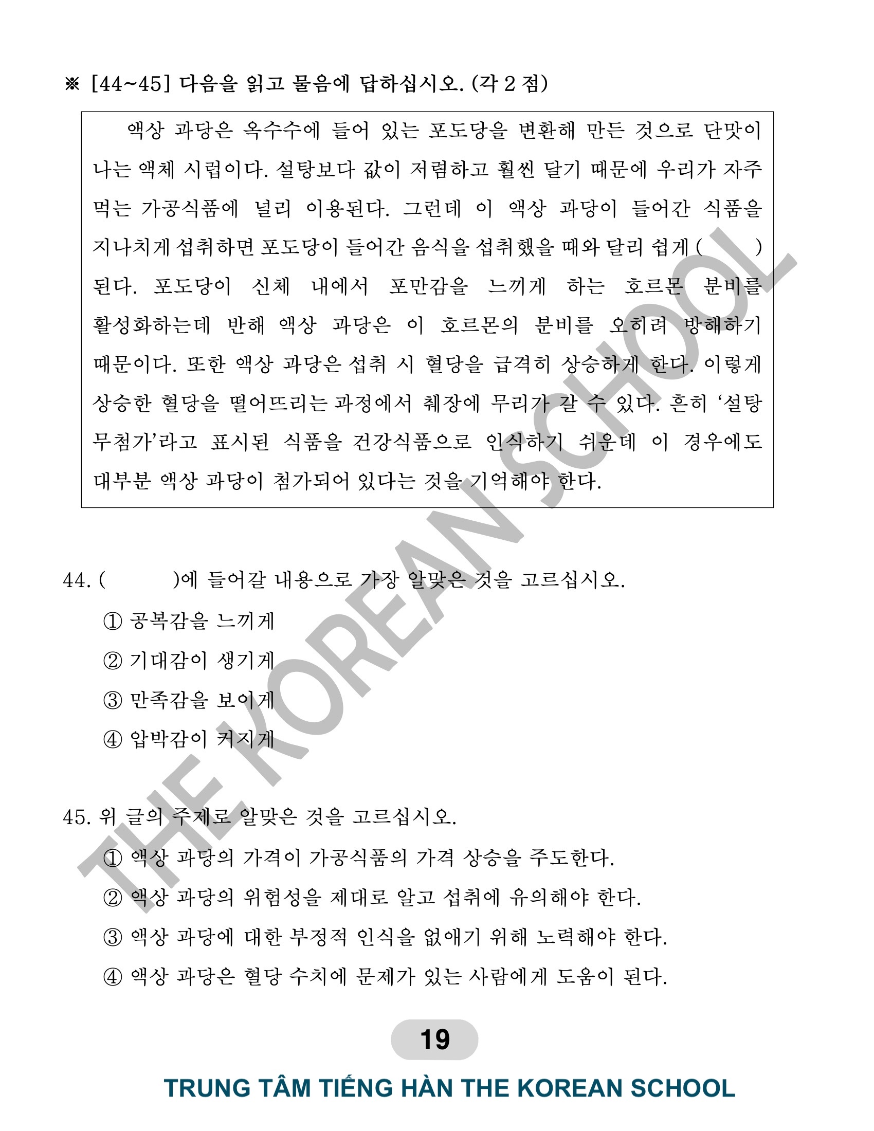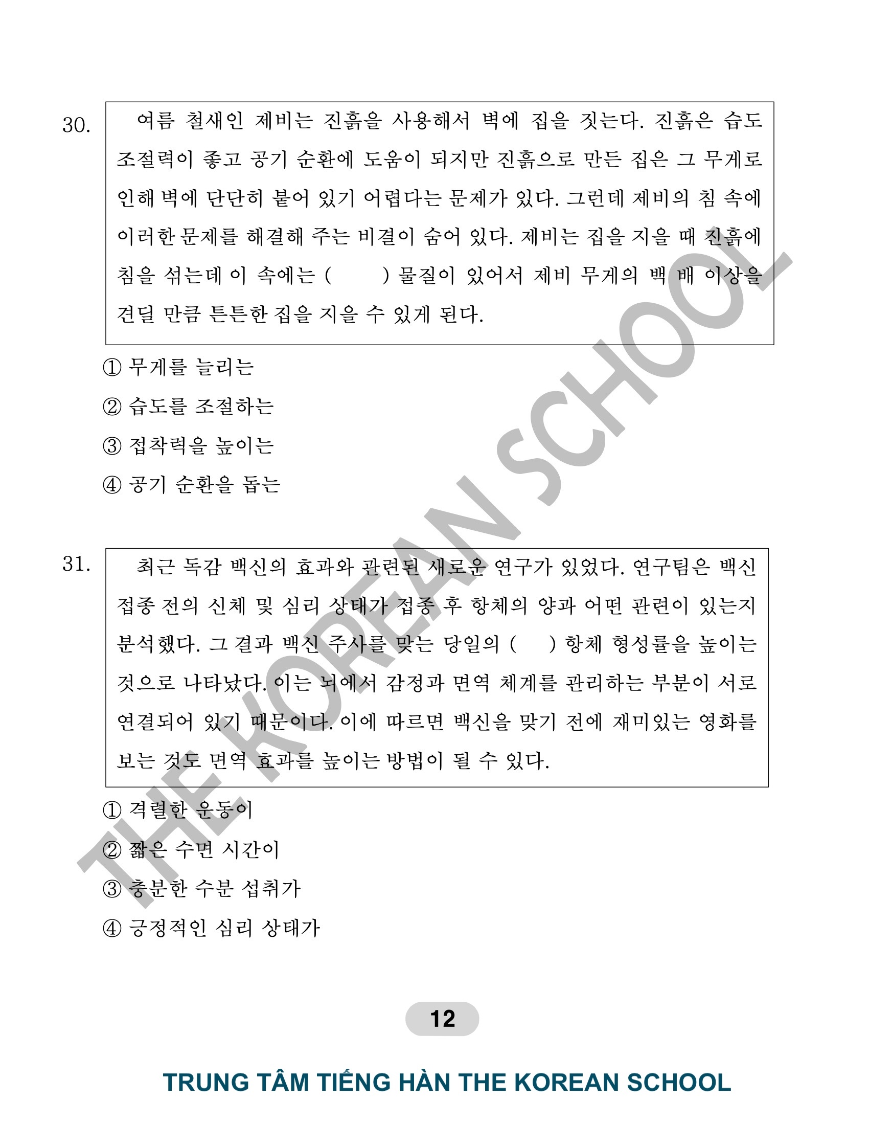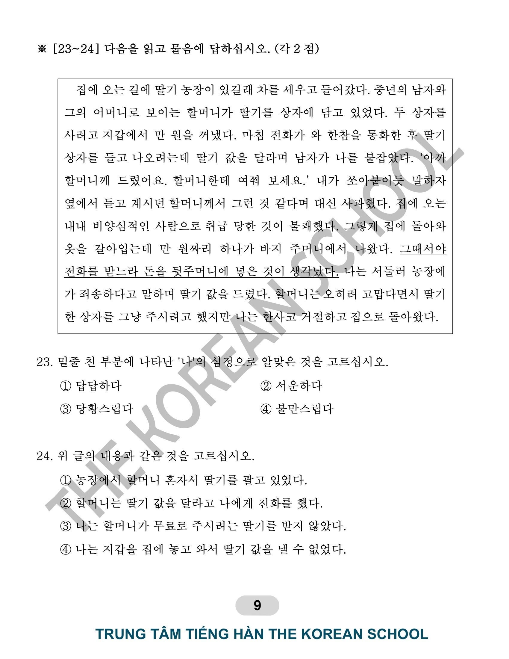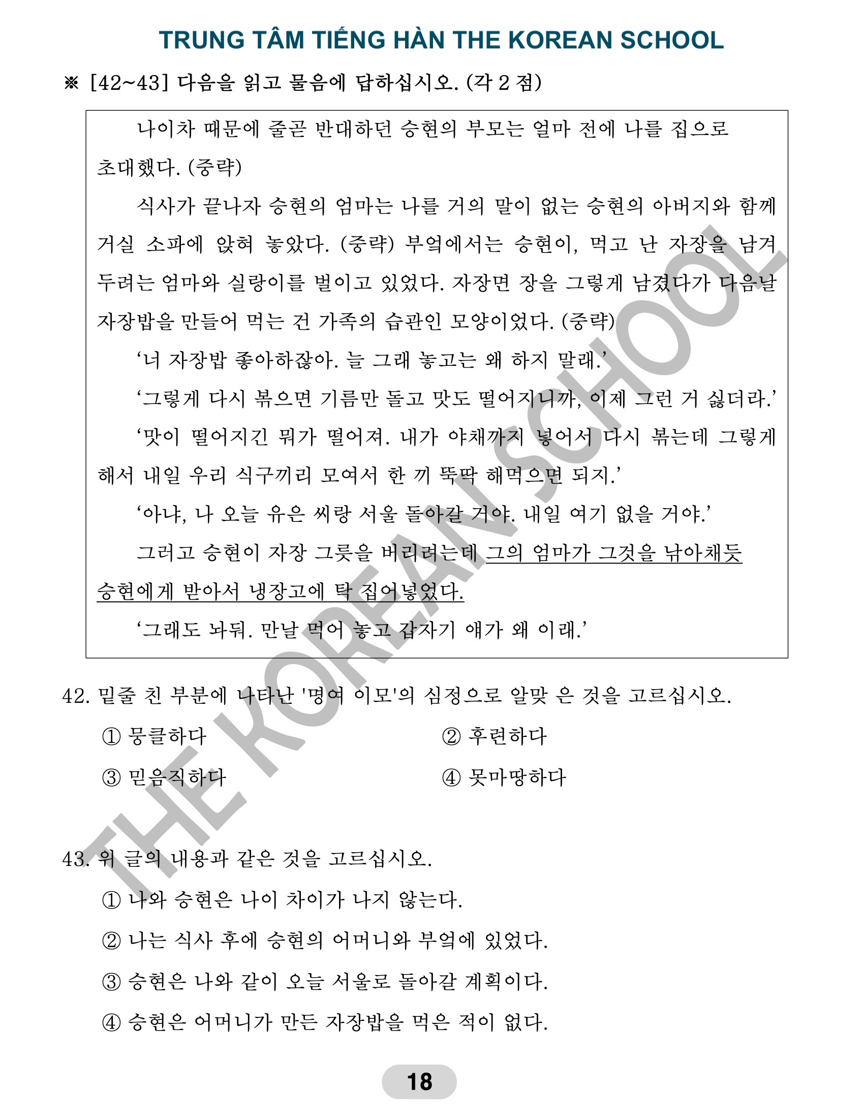 Trung tâm tiếng Hàn The Korean School xin gửi các bạn Đề thi TOPIK II – Đề Đọc Kỳ 78 – Đề Không Công Khai
