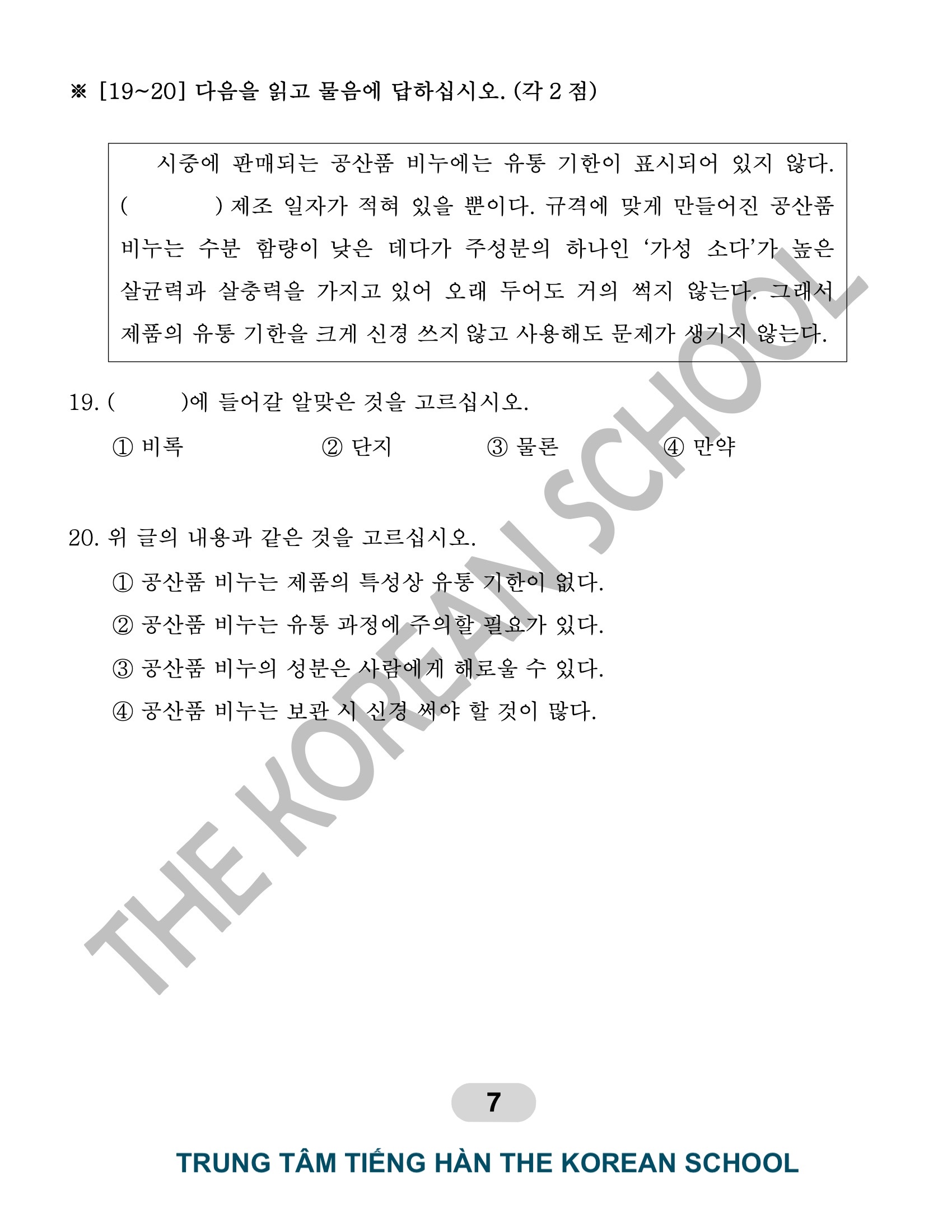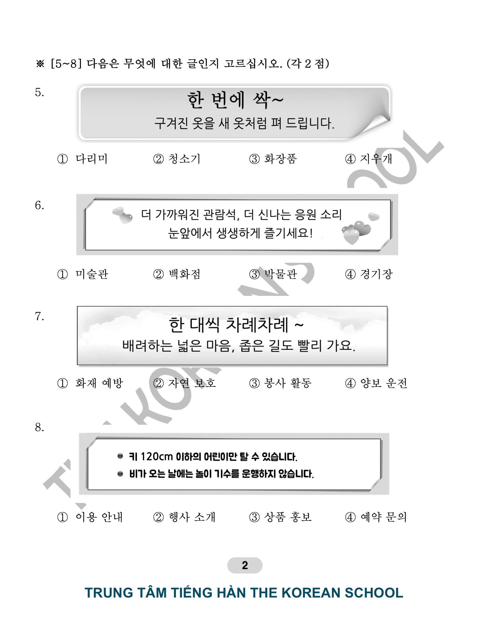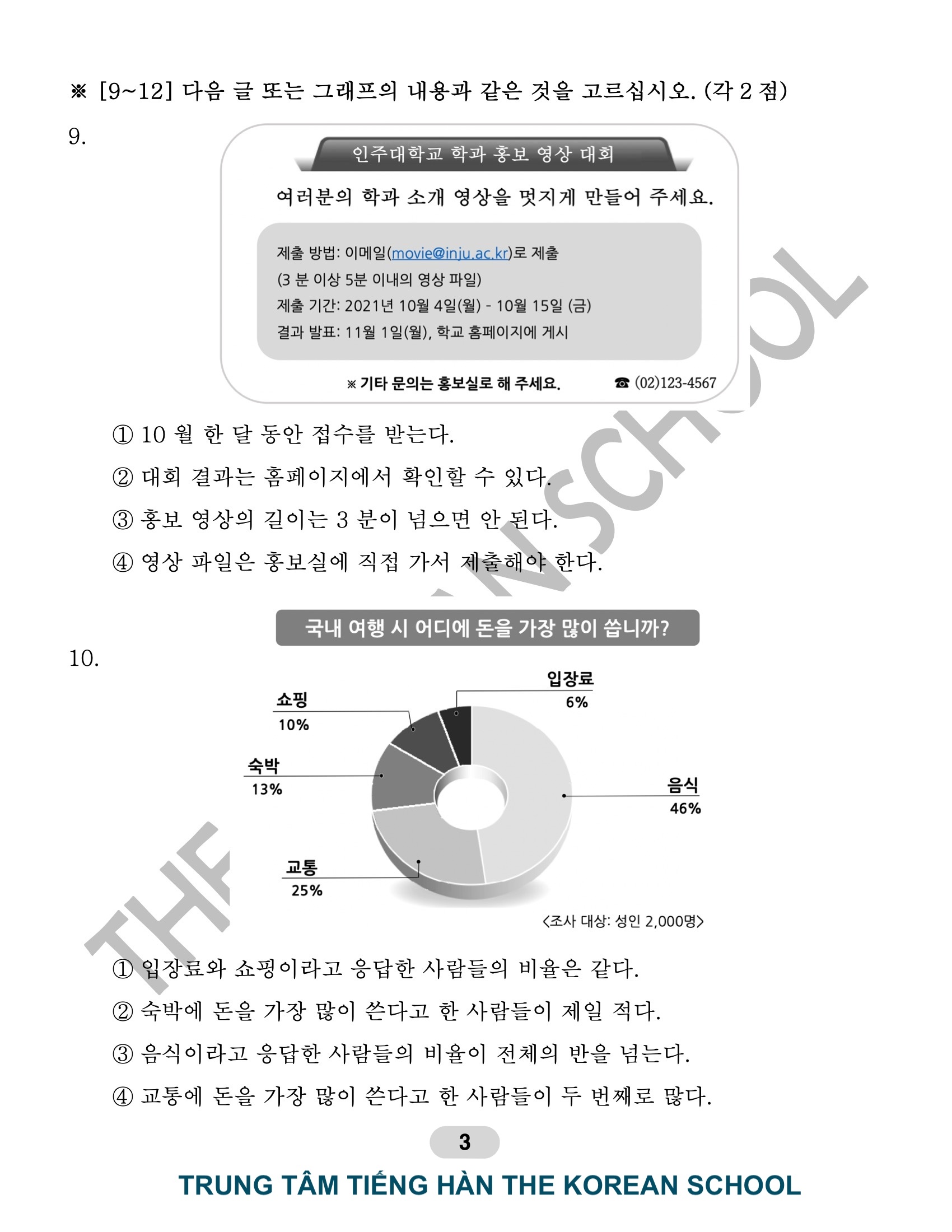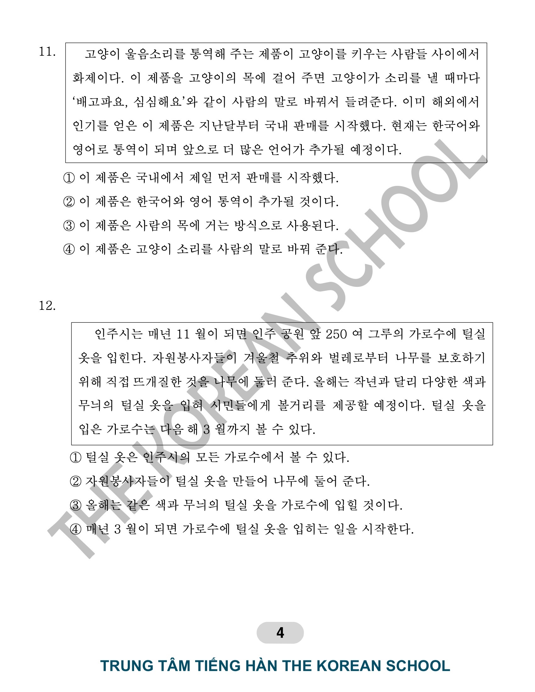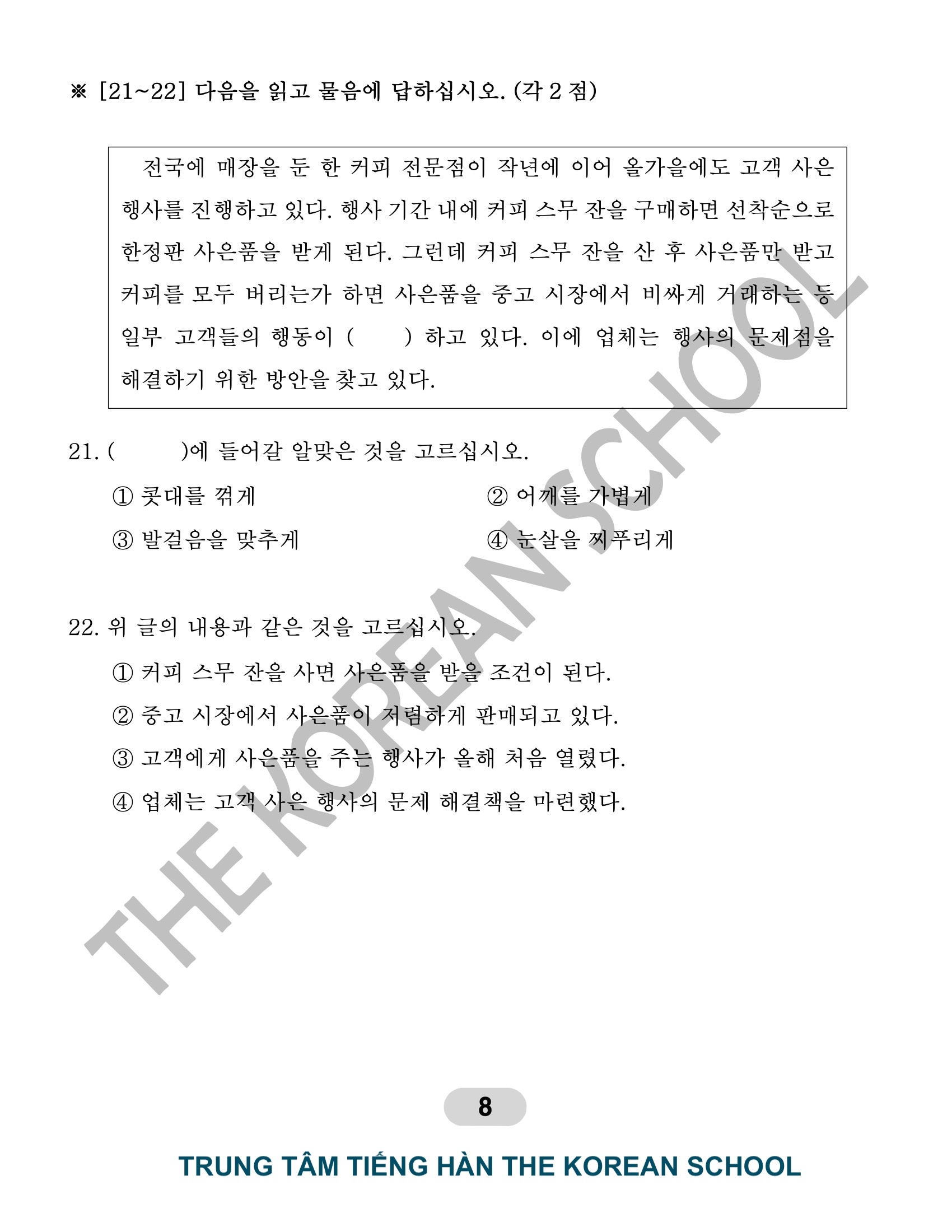 Trung tâm tiếng Hàn The Korean School xin gửi các bạn Đề thi TOPIK II – Đề Đọc Kỳ 78 – Đề Không Công Khai