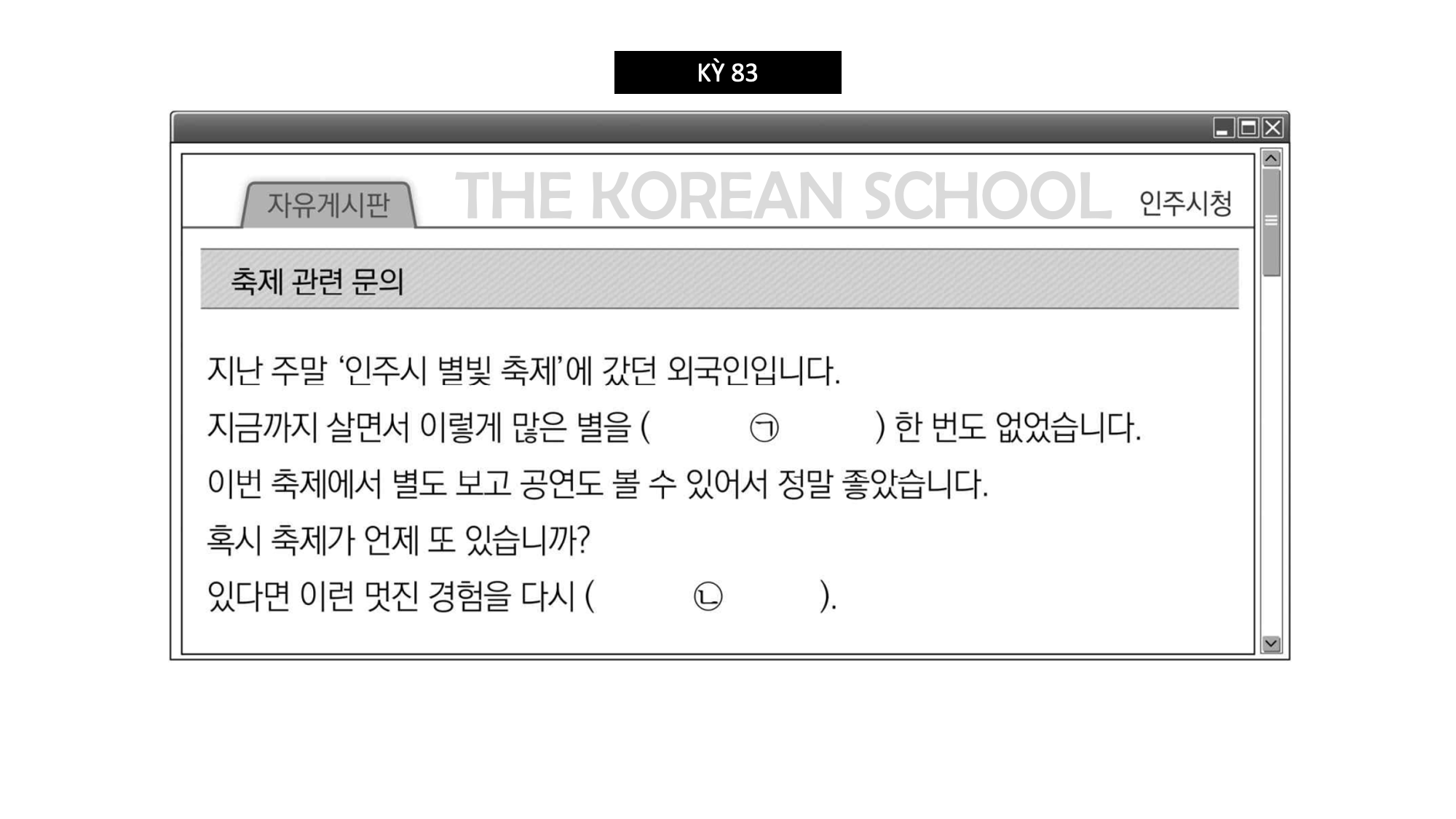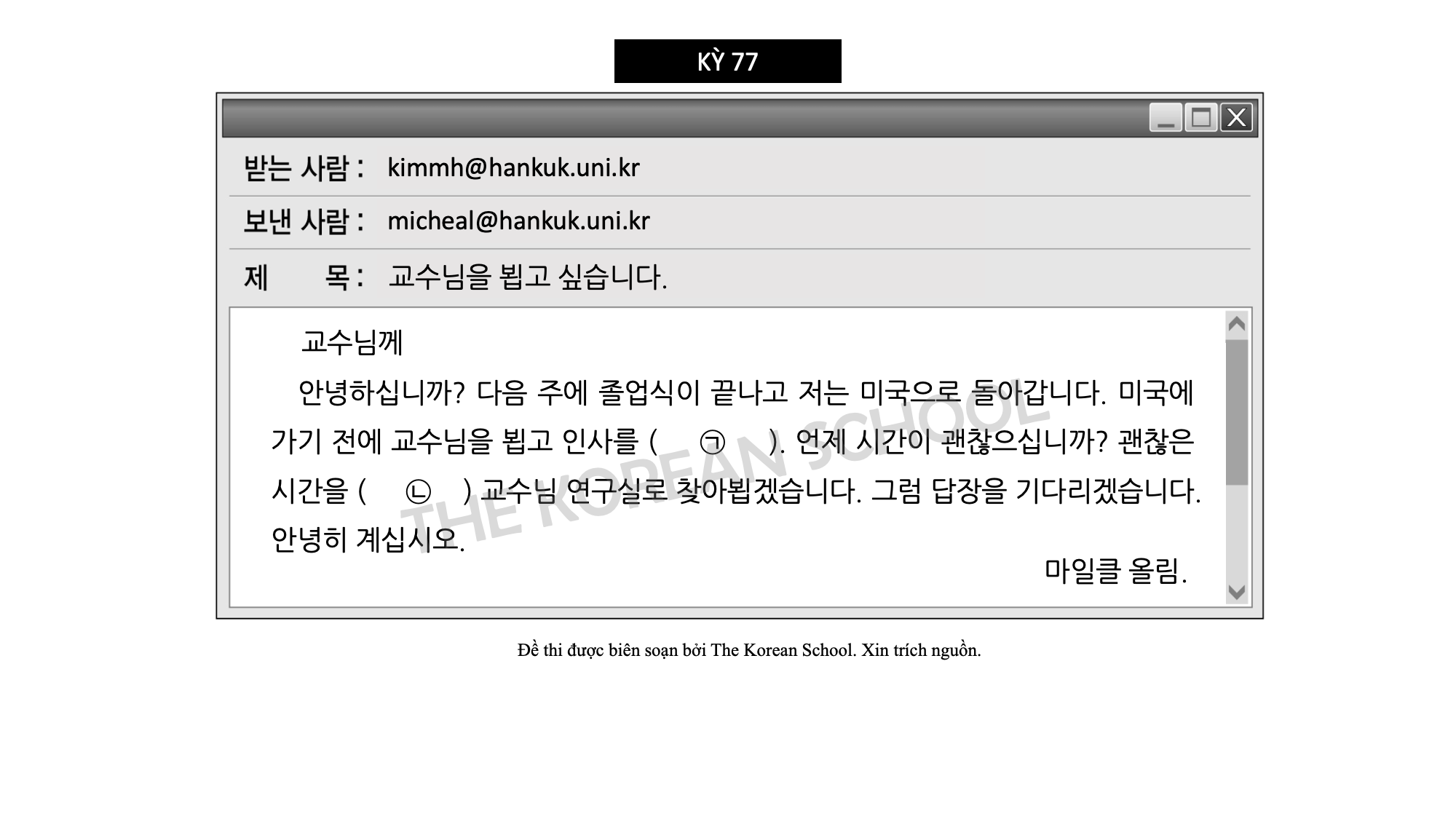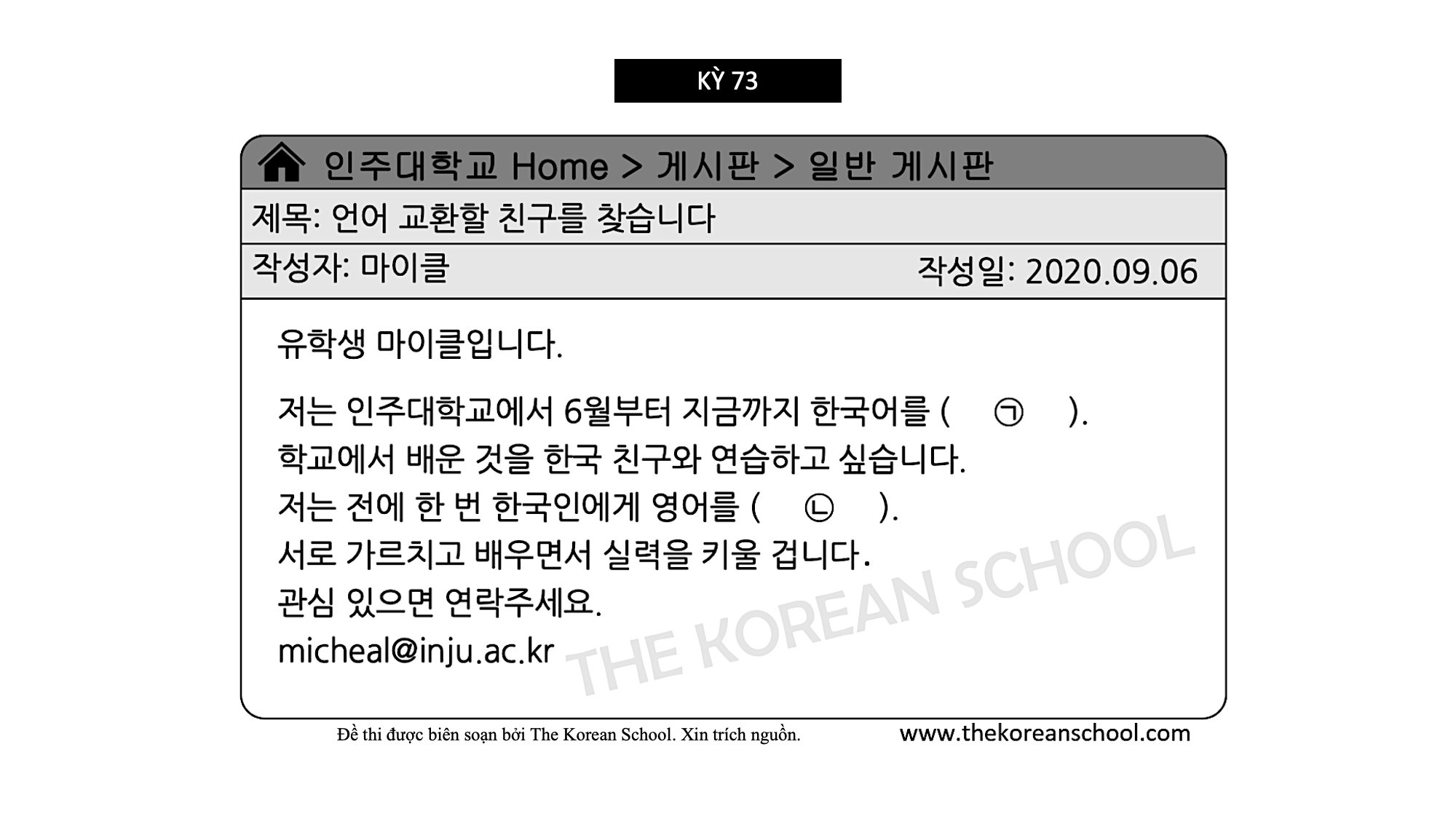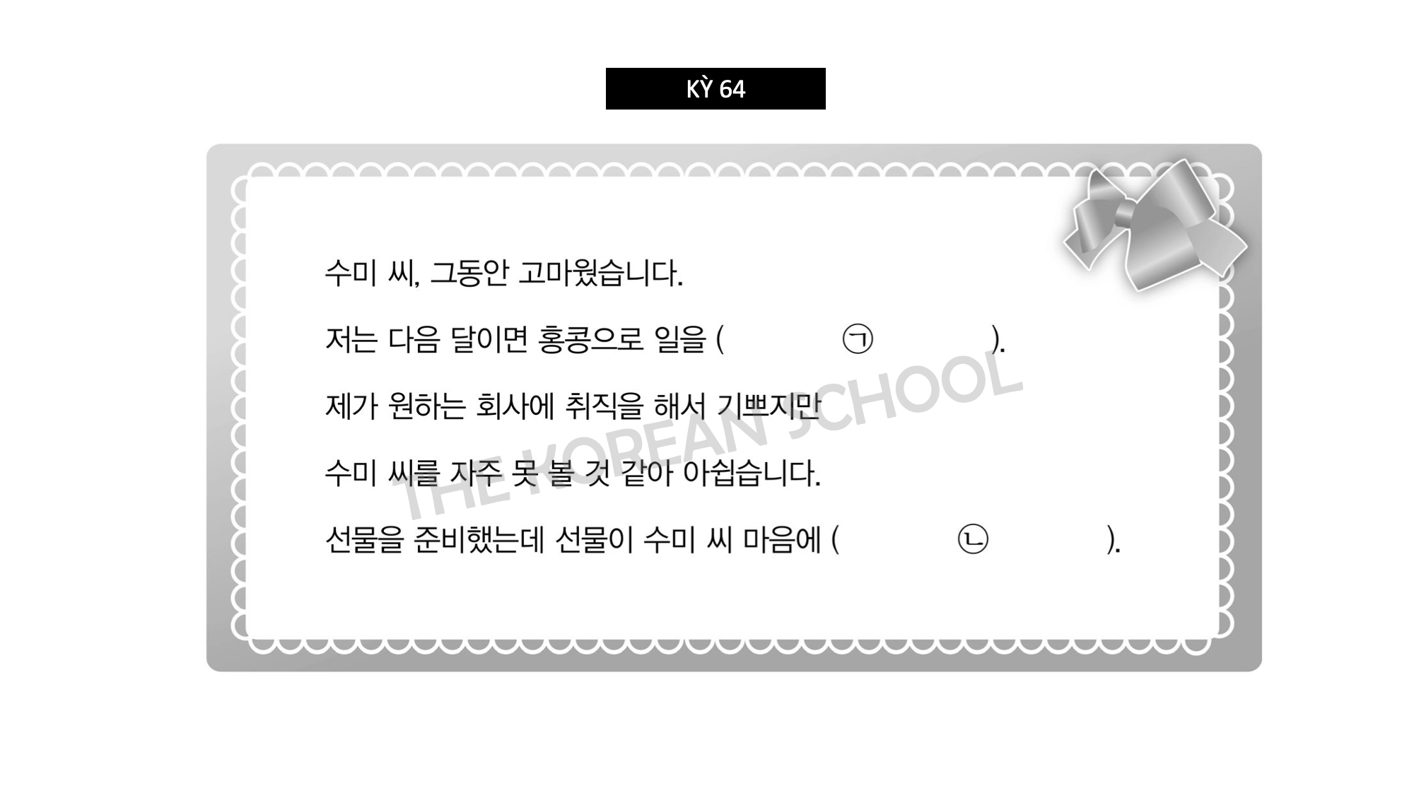 Trung tâm tiếng Hàn The Korean School gửi đến bạn 100 câu viết 51 TOPIK II do The Korean School độc quyền biên soạn. Thông qua bài viết này, bạn sẽ hiểu rõ hơn về phương pháp viết câu 52 và đạt điểm cao hơn trong kỳ thi TOPIK II. Chúc các bạn học tốt!